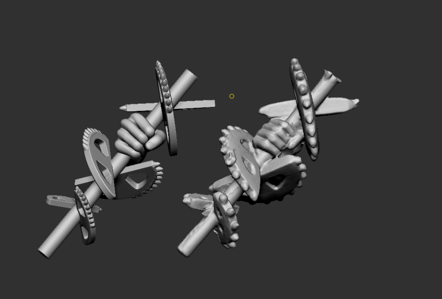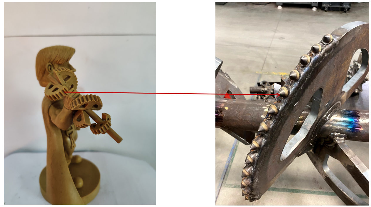 If reamer was made of resin, it would be difficult to ensure its shape accuracy, and it would also be prone to breakage.After times experiments, we decided to make the reamerof alloy and then glued to main body of the sculpture.